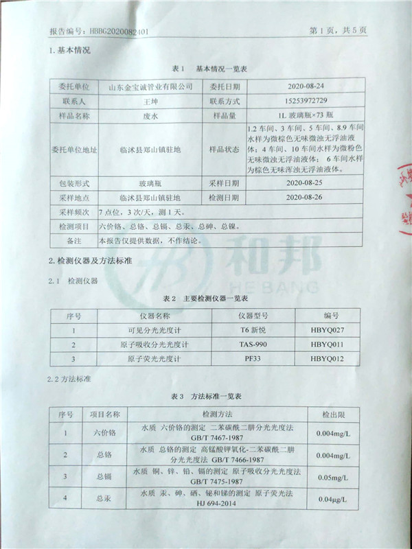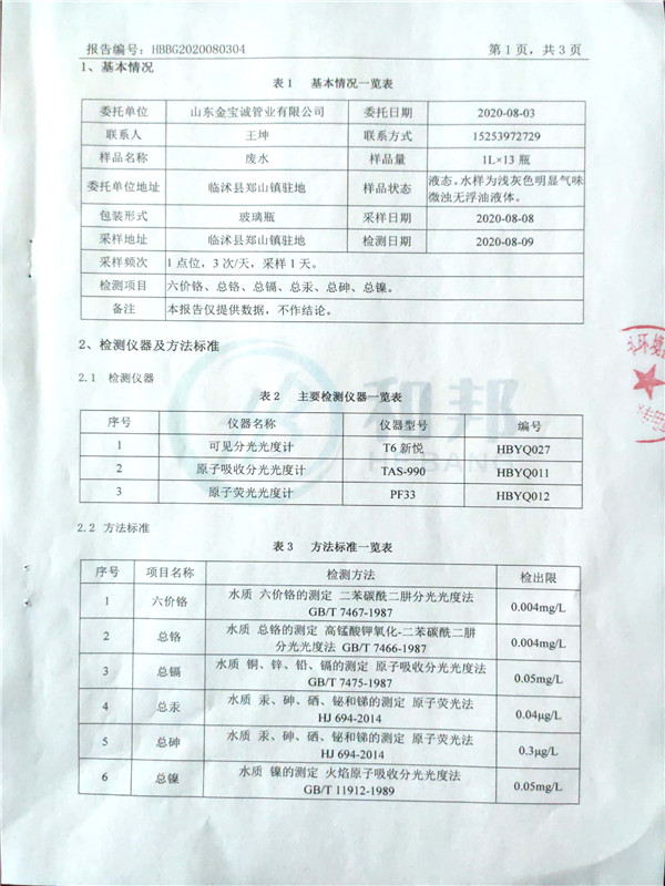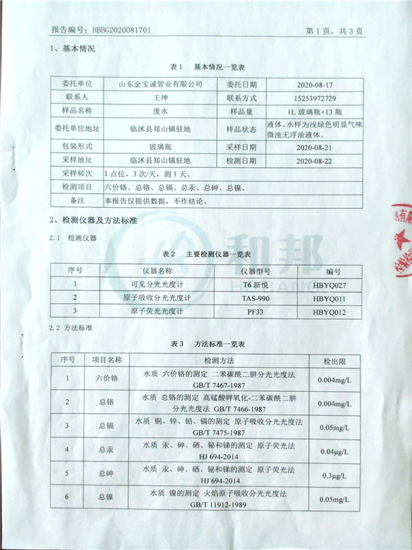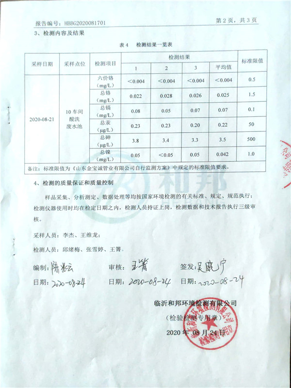 金寶誠(chéng)8月份檢測(cè)報(bào)告